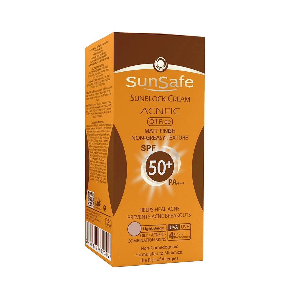 کرم ضد آفتاب فاقد چربی سان سیف SPF 50 مناسب پوست چرب حجم 50 میلی لیتر بژ روشن